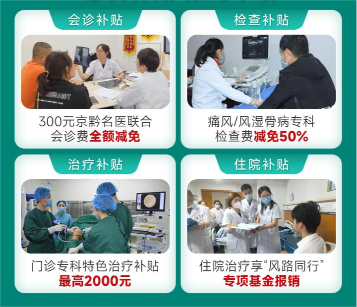 為減輕廣大痛風(fēng)風(fēng)濕骨病患者的就醫(yī)負(fù)擔(dān),本次京黔名醫(yī)會(huì)診期間,同步發(fā)放|會(huì)診|檢查|治療|住院在內(nèi)四大惠民,詳情如下: