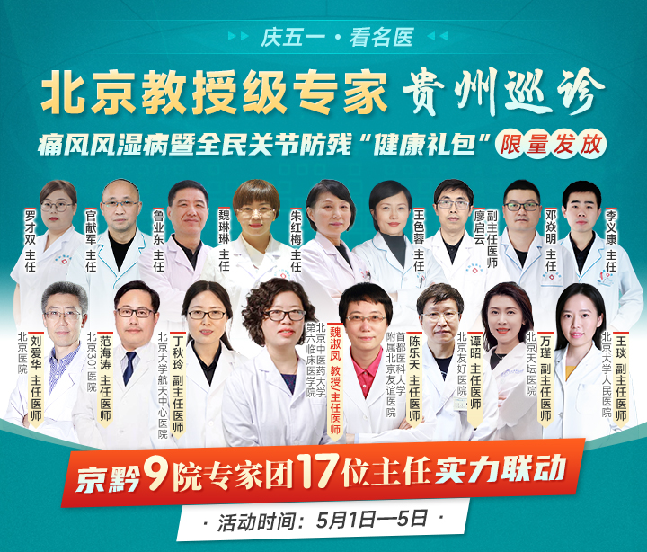 為貫徹落實(shí)我省殘疾預(yù)防行動(dòng)計(jì)劃(2022-2025)通知精神,讓更多的患者受益于??茰?zhǔn)確 診療帶來的效果,降低甚至避免關(guān)節(jié)致殘危險(xiǎn) ,同時(shí)滿足患者“假期看北京名醫(yī)”的就診需求,經(jīng)多方聯(lián)合部署,主題為“慶五一·看名醫(yī)|北京醫(yī)生級(jí)醫(yī)生貴州巡診痛風(fēng)風(fēng)濕病暨全民關(guān)節(jié)防殘‘健康禮包’限量發(fā)放”活動(dòng)將于5月1日-5日在二級(jí)醫(yī)院——貴陽強(qiáng)直醫(yī)院詳細(xì)啟動(dòng)。
