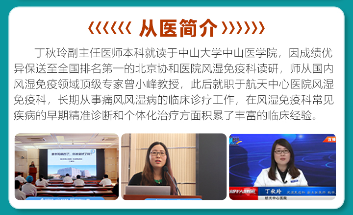 作為本次助殘日公益活動倡議支持者之一的『航天核心醫(yī)院』風(fēng)濕免疫科教學(xué)醫(yī)生——丁秋玲副醫(yī)生醫(yī)師將蒞臨我院開展為期兩天(5月18-19日)的專場會診,屆時(shí)與院多學(xué)科醫(yī)生團(tuán)隊(duì)共同評估痛風(fēng)風(fēng)濕病患者病情進(jìn)展程度和可能存在的致殘危險(xiǎn) ,聯(lián)合制定個體化“治痛防殘”診療方案。