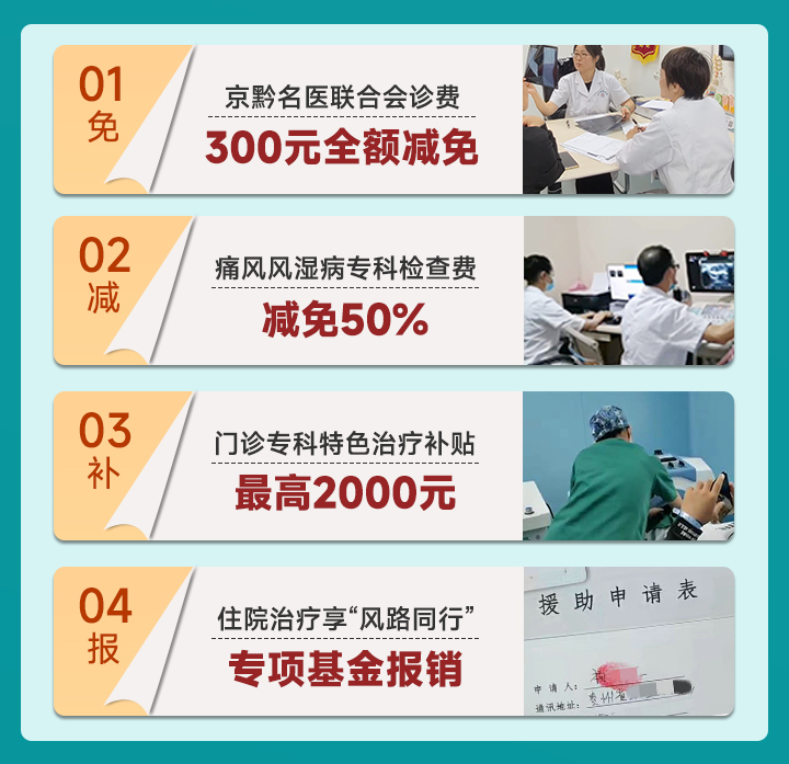 考慮到痛風(fēng)風(fēng)濕病是慢疾病 ,病程長、易反復(fù),有的患者在漫長的求醫(yī)過程中無力承擔(dān)治療費(fèi)而放棄治療,導(dǎo)致疾病進(jìn)展較終走向殘疾。為減輕患者看病貴問題,活動期間,到院患者可申領(lǐng)以下就醫(yī)。