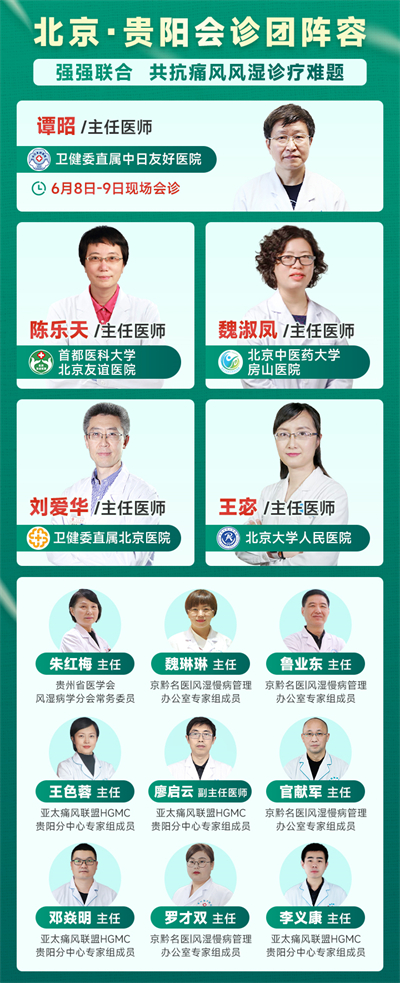 端午期間,不出貴州在我院即可看北京醫(yī)生。6月8日-9日,衛(wèi)健委直屬中日友好醫(yī)院譚昭醫(yī)生醫(yī)師領(lǐng)銜首都醫(yī)科北京友誼醫(yī)院、北京患者醫(yī)院、北京中醫(yī)藥房山醫(yī)院、衛(wèi)健委直屬北京醫(yī)院專業(yè)正規(guī) 醫(yī)生強勢助陣,線上線下實力聯(lián)動,一站式滿足患者“家門口看北京名醫(yī)”的需求。