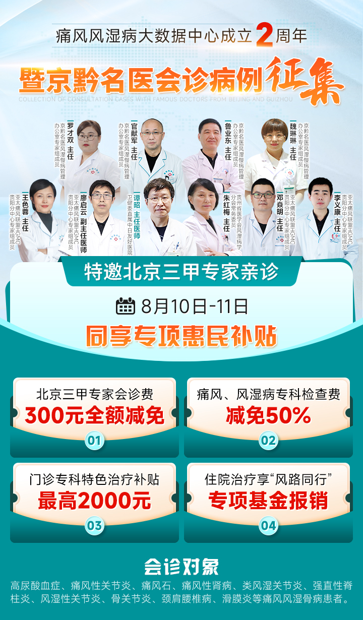 “痛風(fēng)風(fēng)濕病大數(shù)據(jù)核心成立2周年暨京黔名醫(yī)會診病例征集”重磅啟動