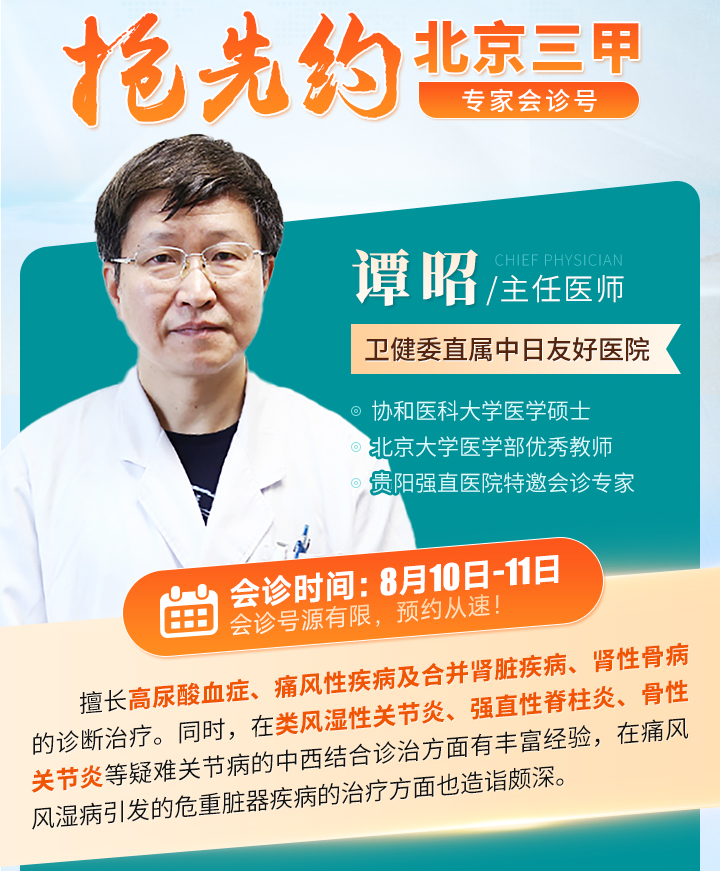 8月10日-11日,衛(wèi)健委直屬中日友好醫(yī)院譚昭醫(yī)生醫(yī)師蒞臨我院,重點征集:飽受關(guān)節(jié)疼痛反復(fù)發(fā)作,嘗試過多種方法,但療效甚微,生活質(zhì)量大打折扣的痛風(fēng)風(fēng)濕病例開展專場會診。期間,同步實施專項惠民。